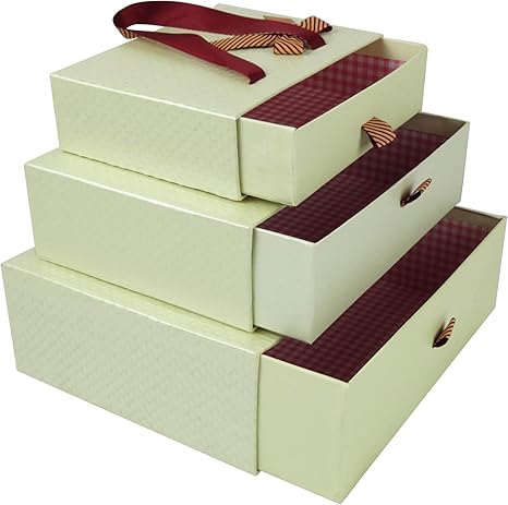 Scatola Crema Strutturata Con Interni A Quadri Emartbuy Set Di 3 Lusso Rigido Rettangolo Confezione Regalo Di Presentazione Fiocco Di Raso E Maniglia Per Il Trasporto Materiali Per Imballaggio Buste E Materiali