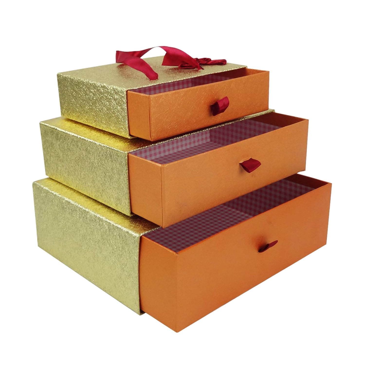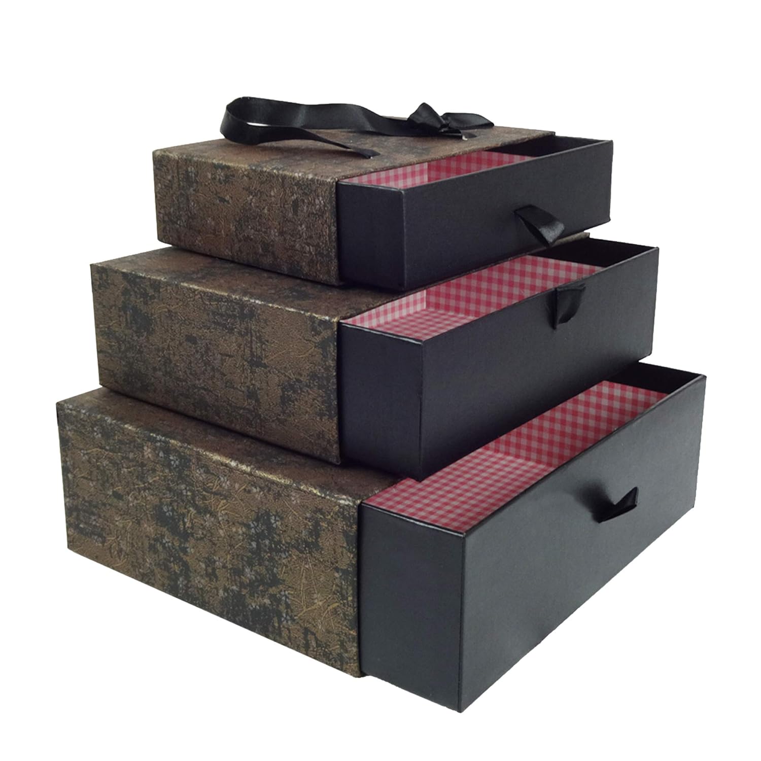 Fiocco Di Raso E Maniglia Per Il Trasporto Emartbuy Set Di 3 Lusso Rigido Rettangolo Confezione Regalo Di Presentazione Scatola Rossa Strutturata Con Interno A Quadri Scatole Da Regalo Materiali Per Imballaggio