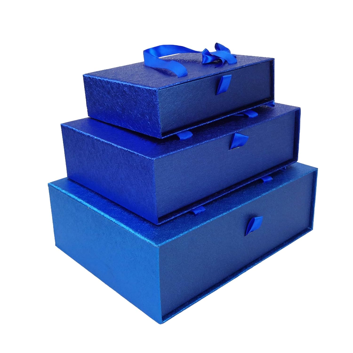 Emartbuy Set Di 3 Lusso Rigido Rettangolo Confezione Regalo Di Presentazione Scatola Dargento Metallica Con Interno A Quadri Fiocco Di Raso E Maniglia Per Il Trasporto Materiali Per Imballaggio Cancelleria E Prodotti