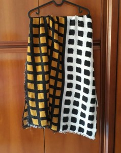 Maxi Sciarpa Zara Donna Quadri Nero Bianco E Giallo Ocra Scialle Foulard Ebay