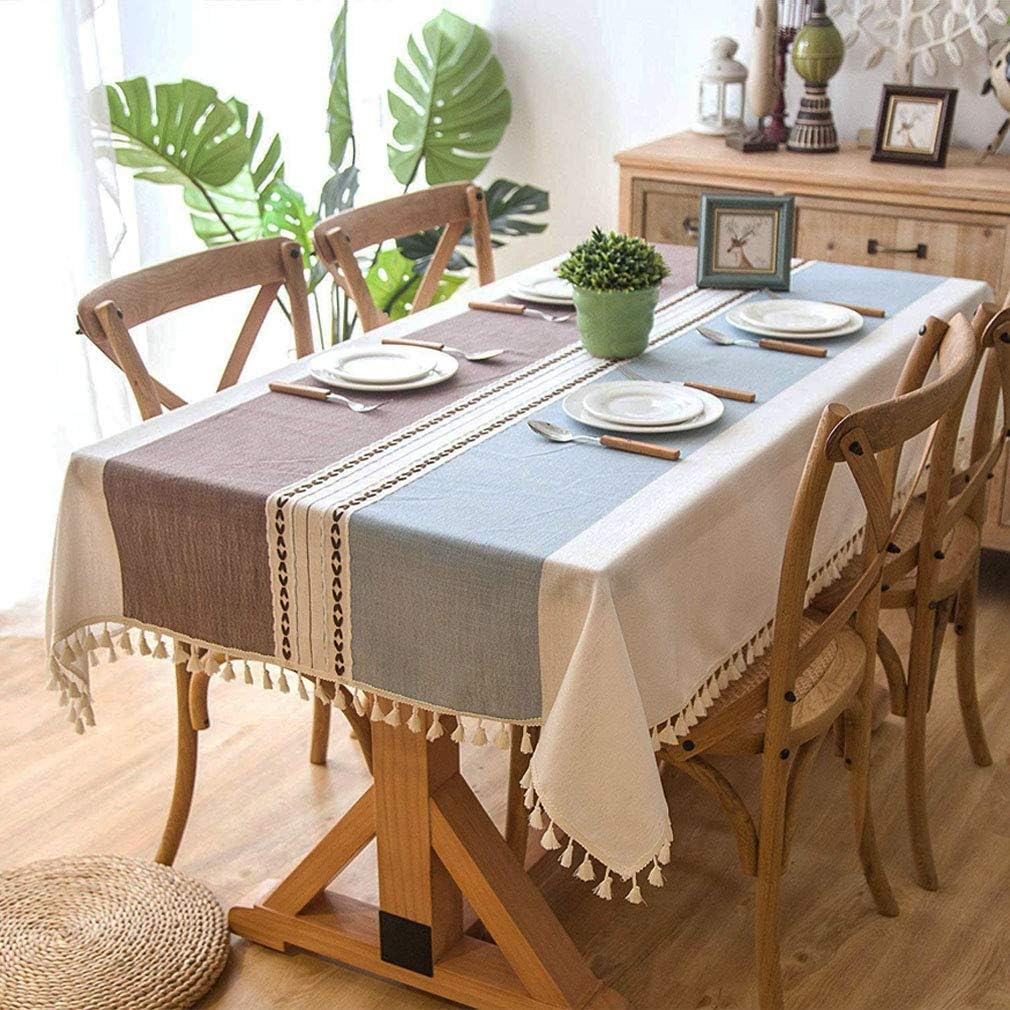 Lifetooler Quadrata Tovaglia Di Cotone Lavabile In Lino Tassel Tovaglia Antipolvere Per La Decorazione Della Cucina A Buffet Da Pranzo Strisce Blu Caffe Quadrato 140x140cm 4 Posti A Sedere Amazon It Casa E Cucina