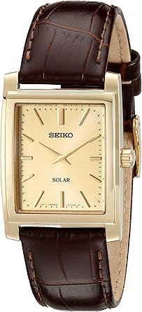 Amazon Com Seiko Men S Sup896 Gold Tone And Brown Leather Solar Power Dress Watch Seiko Watches