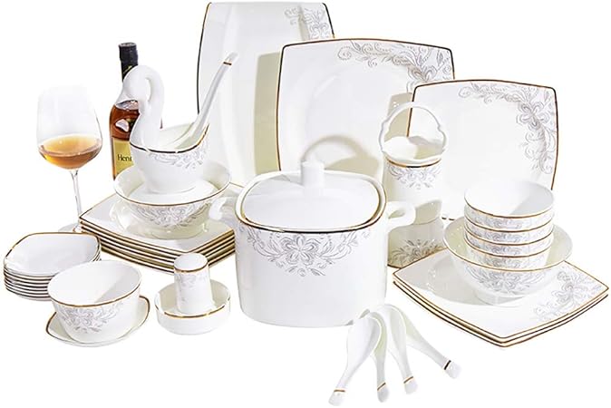 Tanamy Set Di Stoviglie Bone China Da 50 Pezzi Con Bordi Dorati Piatti Quadrati Bianchi Piatti Ciotole Zuppa Pentola Cucina E Pranzo Servizio Essenziale Resistente Ai Trucioli Per 10 Amazon It Casa E