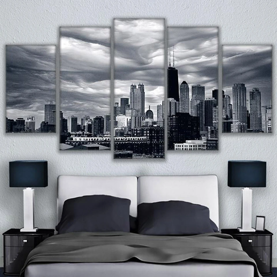 Quadro Modulare Dipinto 5 Pannelli Chicago Skyline Edificio Moderno Tipo Di Stampa Poster Tela Pittura Stampa Hd Decorazioni Per La Casa Canvas Painting Modular Pictureschicago Skyline Aliexpress