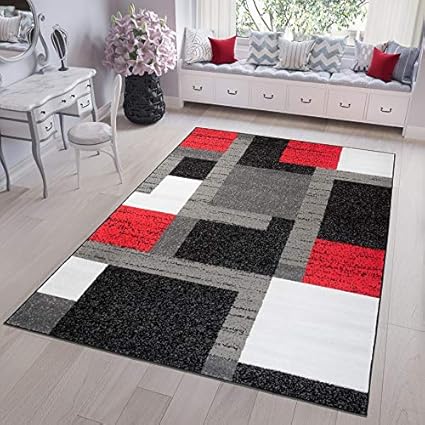 Tapiso Fire Tappeto Salotto Soggiorno Salotto Moderno Camera Da Letto Rosso Nero Quadrato Geometrico A Pelo Corto 120 X 170 Cm Amazon It Casa E Cucina