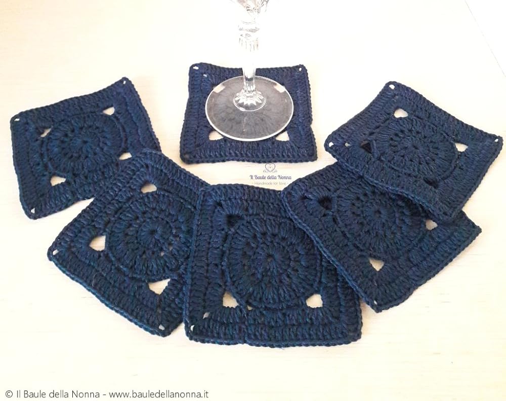 Set 6 Sottobicchieri Quadrati All Uncinetto In Cotone Blu Art 104 Amazon It Handmade