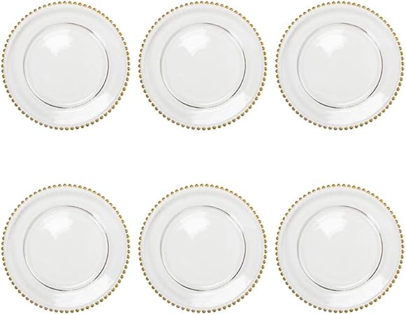 6 Pezzi Eme Sottopiatto Presentazione Perle Oro Dorato 6 Pezzi In Vetro Trasparente 33 Cm Di Diametro Piatti Sottopiatti