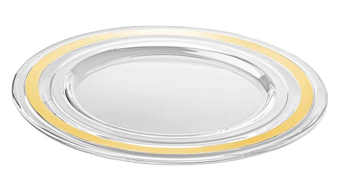 Noleggio Sottopiatto Vetro Trasparente Filo Oro O Cm 32 Per Catering