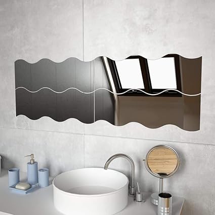 Clarashop Specchio Da Parete Quadrato Motivo Onde Dargento Regalo Per Bambini 6 Pezzi Decorazione Da Parete Ingresso Arredamento