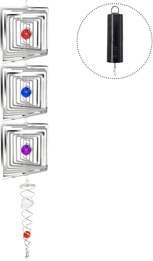 Qtkj 3d In Acciaio Inox Specchio Quadrato Girandola A Vento Metallo Vento Ornamento Da Giardino Yard Spinner Da Appendere Con Ciondolo In Cristallo Rosso Nero Girante Del Motore A Batteria Amazon It Giardino