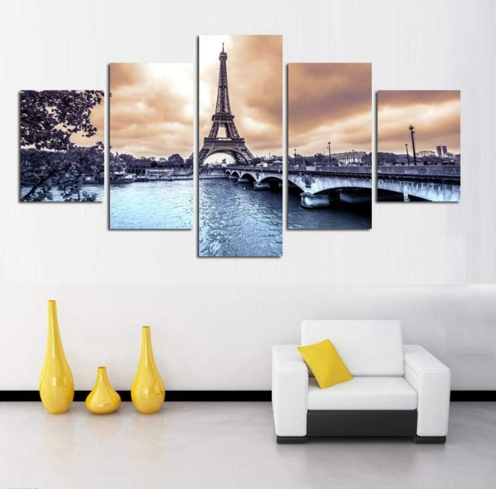 Tkkxqt Stampe E Quadri Su Tela 5 Pezzi Paesaggio Urbano Di Parigi Torre Eiffel Poster Hd Soggiorno Decorazione Dimensioni C Amazon It Casa E Cucina