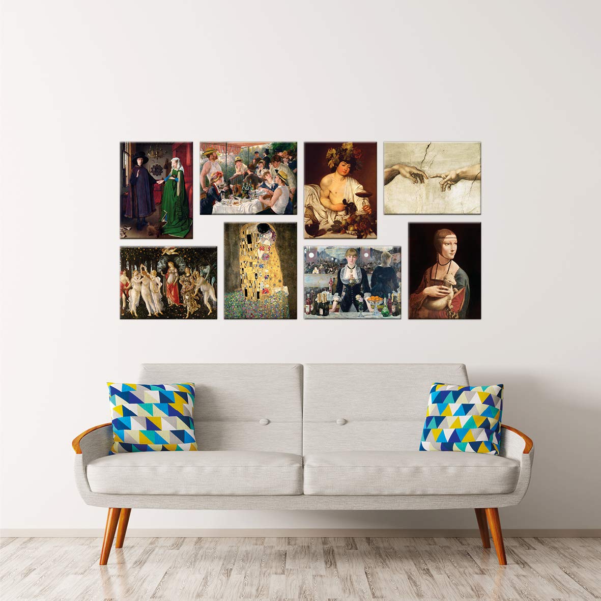 Stampe E Quadri Su Tela Casa E Cucina Luxhomedecor Quadri Famosi 8 Pezzi 40x30 Cm Stampa Su Tela Con Telaio In Legno Jan Van Eyck Renoir Caravaggio Michelangelo Botticelli Klimt Manet Leonardo