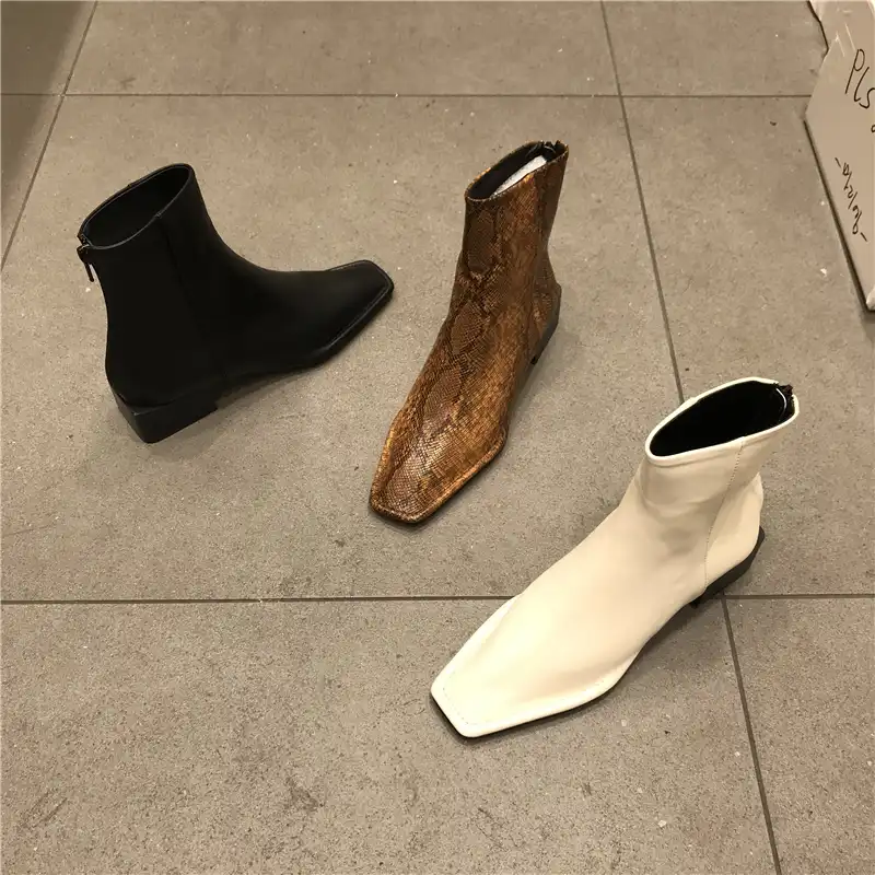 2021 Moda Donna Stivaletti Punta Quadrata Scarpe Tacco Basso Donna Cerniera Posteriore Stivaletti Corti Nero Bianco Botas Mujer Stivaletti Aliexpress