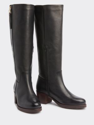 Stivali Alti In Pelle Con Tacco Quadrato Nero Tommy Hilfiger