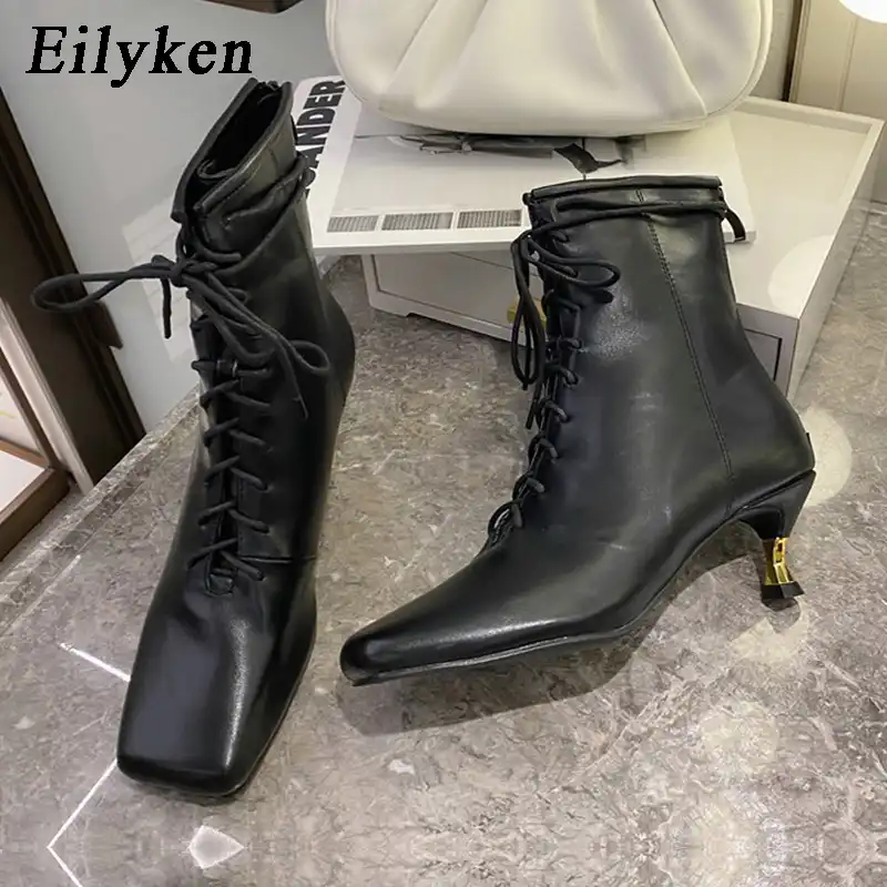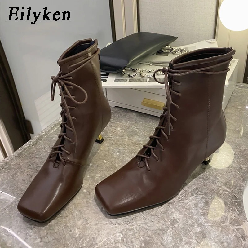 Eilyken Brand Design Stivaletti Da Donna Stringati Neri Marroni Punta Quadrata Stivali Tacco Basso Decollete Da Donna Stivali Da Donna Scarpe Stivaletti Aliexpress