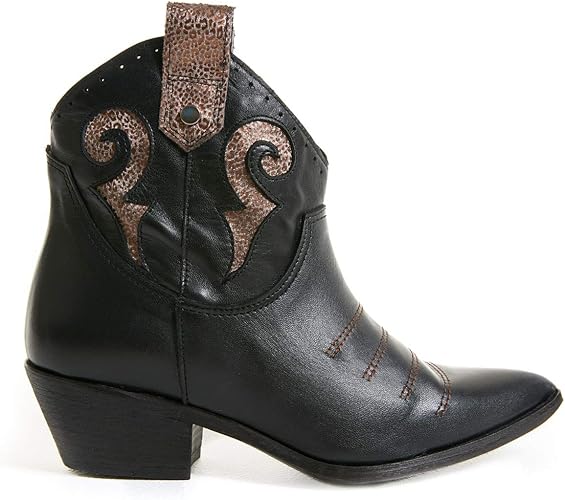 Marsida Carol Stivaletti A Punta Donna Neri In Pelle Stile Texano Con Tacco Quadrato Riporti Micro Maculati In Camoscio Made In Italy Amazon It Scarpe E Borse