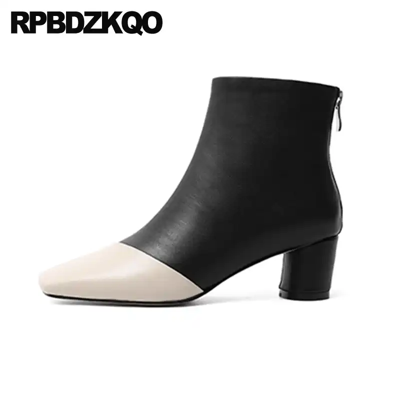 Nero Tacco Alto Inverno In Vera Pelle Di Breve Blocco 2019 Stivaletti Custom Chunky Scarpe Delle Signore Delle Donne Della Caviglia Stivali Di Medio Punta Quadrata Stivaletti Aliexpress