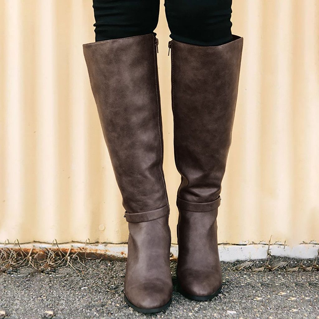 Ohq Stivali Alti Con Tacco Quadrato Con Cerniera In Pelle Da Donna Scarpe Alte Fino Al Ginocchio Stivali Con Punta Tonda Moda Autunno E Inverno Nero Cachi Marrone 35 42 5 Amazon It Scarpe E Borse