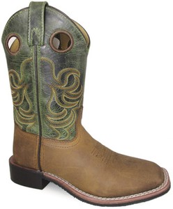 Smoky Mountain Boys Jesse Stivali Cowboy Western Punta Quadrata Stitch Verde Marrone Ebay