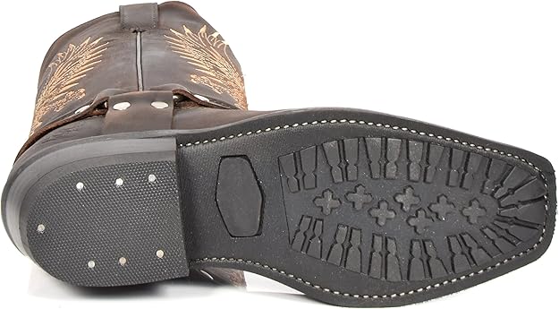 Loblan 620 Stivali Cowboy Vera Pelle Western Moto Punta Quadra Tasche Fibbia Marrone Amazon It Scarpe E Borse