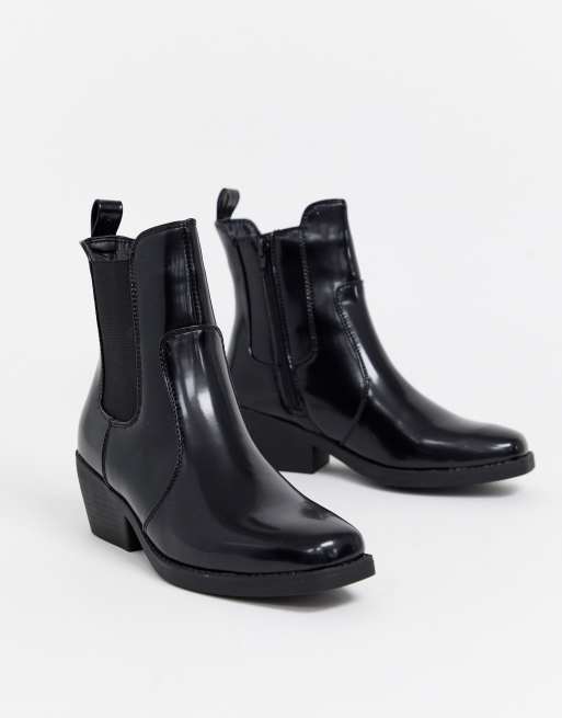 Bershka Stivaletti Bassi Stile Western Con Punta Quadrata Neri Evesham Nj