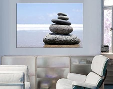 Stones Modern On Canvas Already Framed Modern 152 X 78 Cm Quadri Furniture Home Spa Centre Welfare Zen Black Stone River Lake Sea Stones Nereestetista Hairdresser Home Office Camera Bed Hotel
