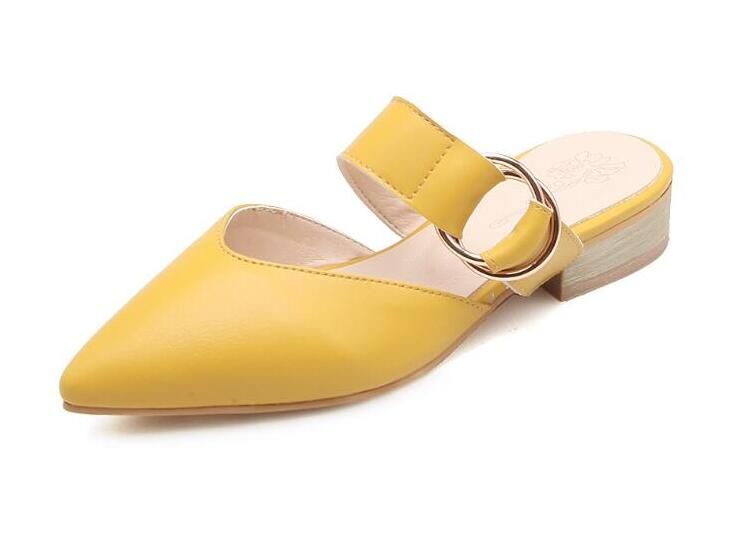 Acquista 2019 Tacchi Bassi Quadrati Estivi Punta A Punta Fibbia Gialla Donna Pantofole Da Donna Scarpe Da Donna Muli A 18 08 Dal Partyshoes Dhgate Com