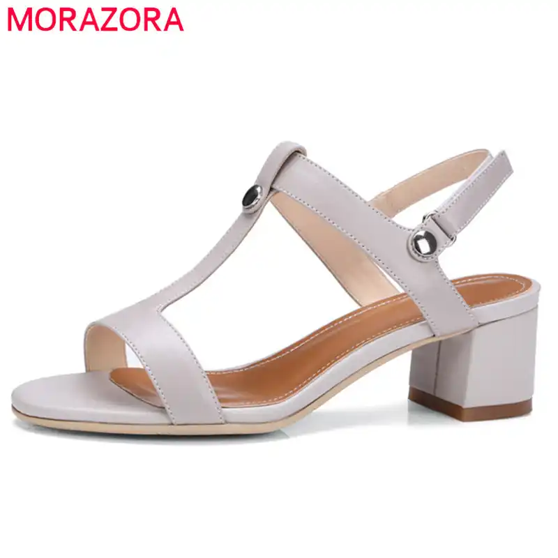 Morazora 2019 Nuovo Arrivo Del Cuoio Genuino Sandali Delle Donne Di Colori Solidi Estate Scarpe Scarpe Con Tacco Quadrato Di Modo Pattini Casuali Delle Signore Tacchi Alti Aliexpress