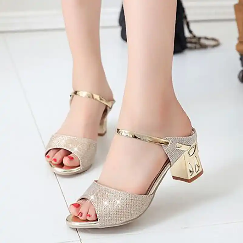 2019 Donne Di Modo Pompe Delle Donne Peep Toe Sandali Tacco Quadrato In Metallo Sandali Di Estate Delle Signore Sandali Bling Scarpe Da Donna Sexy Scarpe Tacchi Alti Aliexpress