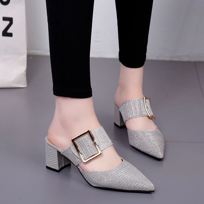 Acquista Mezze Pantofole Donna Tacco Quadrato Scarpe Da Donna A Punta A Punta Scarpe Estive 2019 Sandali New Fashion A 17 8 Dal Lvzhibagshoe002 Dhgate Com