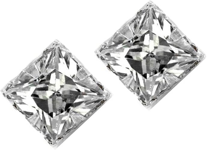 Ijewelry2 Orecchini Magnetici Senza Buco Da Uomo A Forma Di Diamante Quadrato In Diossido Di Zirconio E Taglio Principessa In Argento Da 4 Mm Amazon It Gioielli
