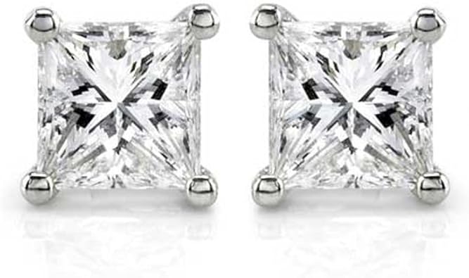 1 Kt Con Diamante Solitario Taglio Princess Orecchini A Perno Da Donna Amazon It Gioielli