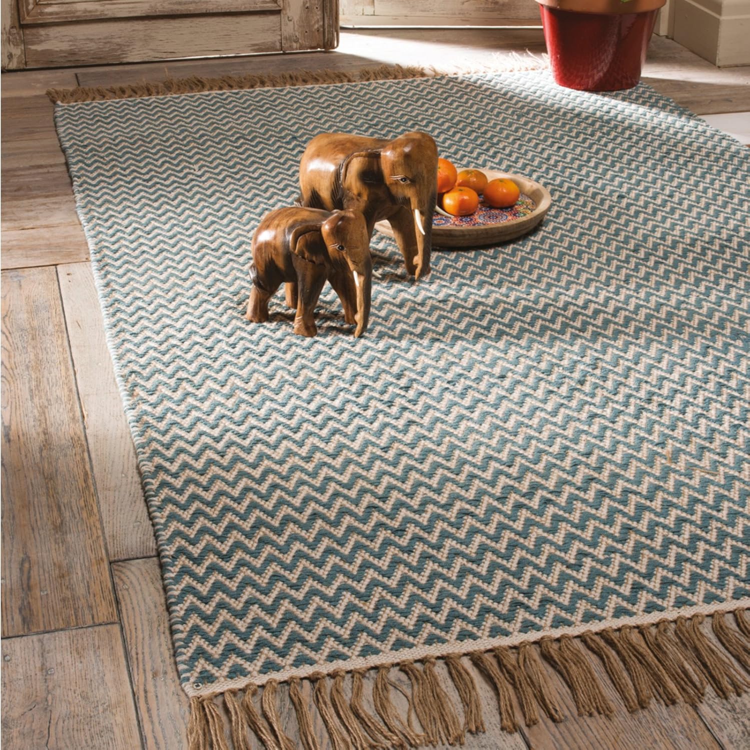 75 X 120 Cm Blue Con Bordo Frange 100 Cotone The Indian Arts Commercio Equo E Solidale Handloom Zig Zag Weave Tappeto Di Cotone Decorazioni Per Interni Tappeti E Tappetini