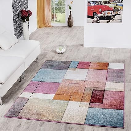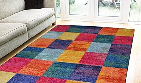 Tappeto A Pelo Corto Per Il Soggiorno Con Design A Quadri Colorato Multicolore E Vivace Dimensione 120x170 Cm Amazon It Casa E Cucina
