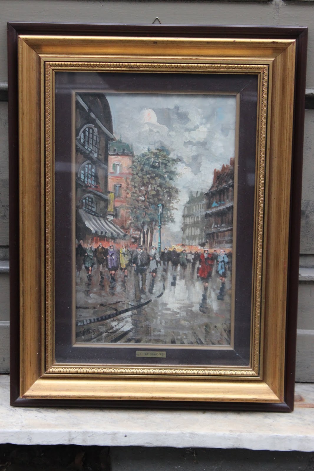Quadro Dipinto Olio Su Tela Rue De Paris Giulio De Simone Cornice In Legno Ebay