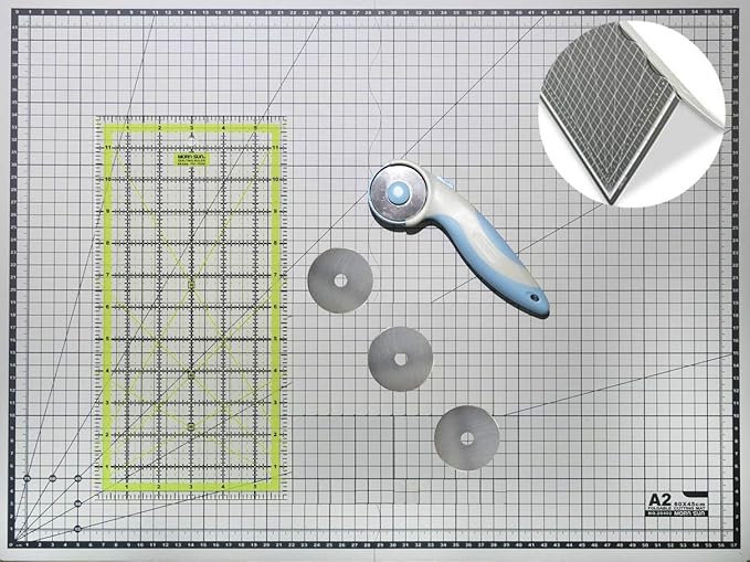 Doc Crafty Tappetino Da Taglio Graduato Formato A2 Pieghevole Una Tavola Da Lavoro Autorigenerante Con Set Righello Per Quilting Antiscivolo Trasparente In Acrilico Con Modello Da Circa 30 40 X 15 24 Cm E 15 2 X 15 2 Cm Con Taglierino Rotante Incluso Da
