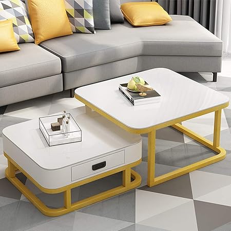 Tavolini A Incastro Quadrati In Vetro Temperato Tavolino Impilabile Con Cassettiera Soggiorno Tavolini Da Salotto 60 Cm 70 Cm X 45 Cm Bianco Amazon It Casa E Cucina