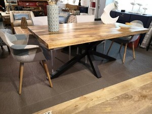 Tavolo In Legno Quadrato Tavolo Legno E Gambe Metallo Injdustrial Outlet Etnico In Offerta Outlet