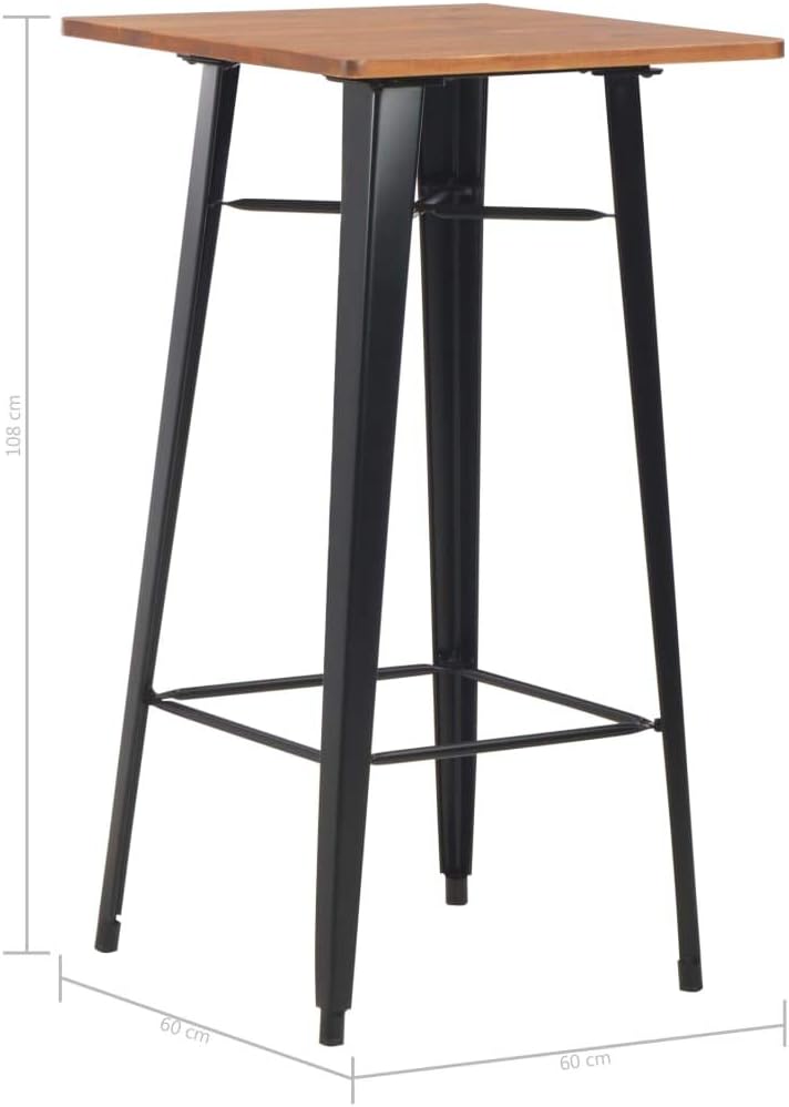 Festnight Tavolo Da Bar Quadrato Moderno In Legno Massello Di Pino E Acciaio Nero Tavolo Da Cucina Quadrato Tavolino Da Bar Quadrato Tavolino Alto Tavolo Alto 60x60x108 Cm Arredo Bar Arredamento