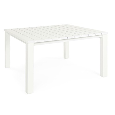 Struttura in alluminio verniciato a polveri in colore super white rivestito in polywood intrecciato color seashell. Tavolo quadrato con vetro brafta 160. Tempi di consegna 30 gg. Tovaglia tavola quadrata 160x160 4 posti 100 cotone.