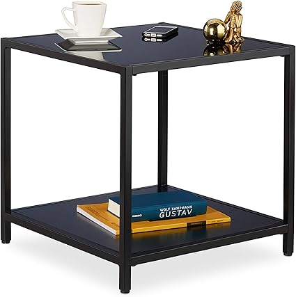 Console E Tavoli Da Divano Casa E Cucina 50 X 50 X 50 Cm 50x50x50cm Cm Nero Ripiani Relaxdays Tavolino Tavolo Da Divano Quadrato Metallo Metallo Mdf Design Moderno