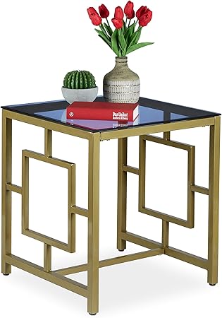 Lxyplm Tavolino Da Salotto Divano Bassi Comodino L Oro Tavolino Di Servizio Vetro Fine Tavolo Quadrato Corner Table Ferro Tavolo Da Te Camera Da Letto Comodino Disegno Semplice 45x50x45cm Amazon It Casa E Cucina