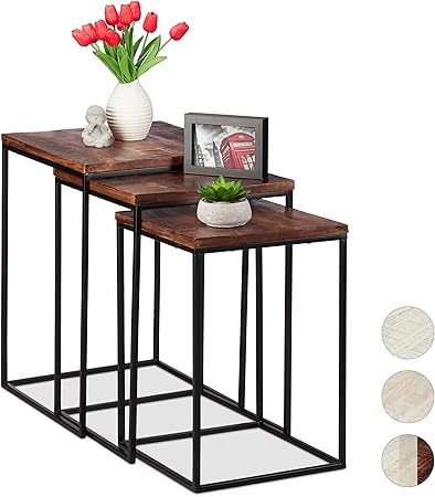Relaxdays Marrone Tavolino Da Salotto Set Da 3 Ripiano In Legno Di Mango Quadrato Telaio In Metallo Industrial Ferro 57 5 X 40 5 X 40 5 Cm Amazon It Casa E Cucina