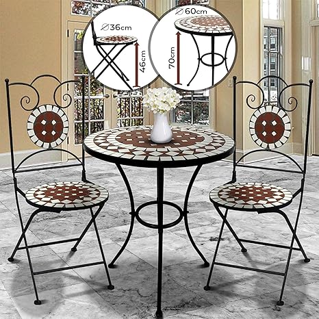 Nova Set Da Giardino Mosaico Tavolo Rotondo O Quadrato 2 Sedie Pieghevoli Altezza Seduta 46 Cm Mobili Da Esterno Da Balcone Amazon It Giardino E Giardinaggio