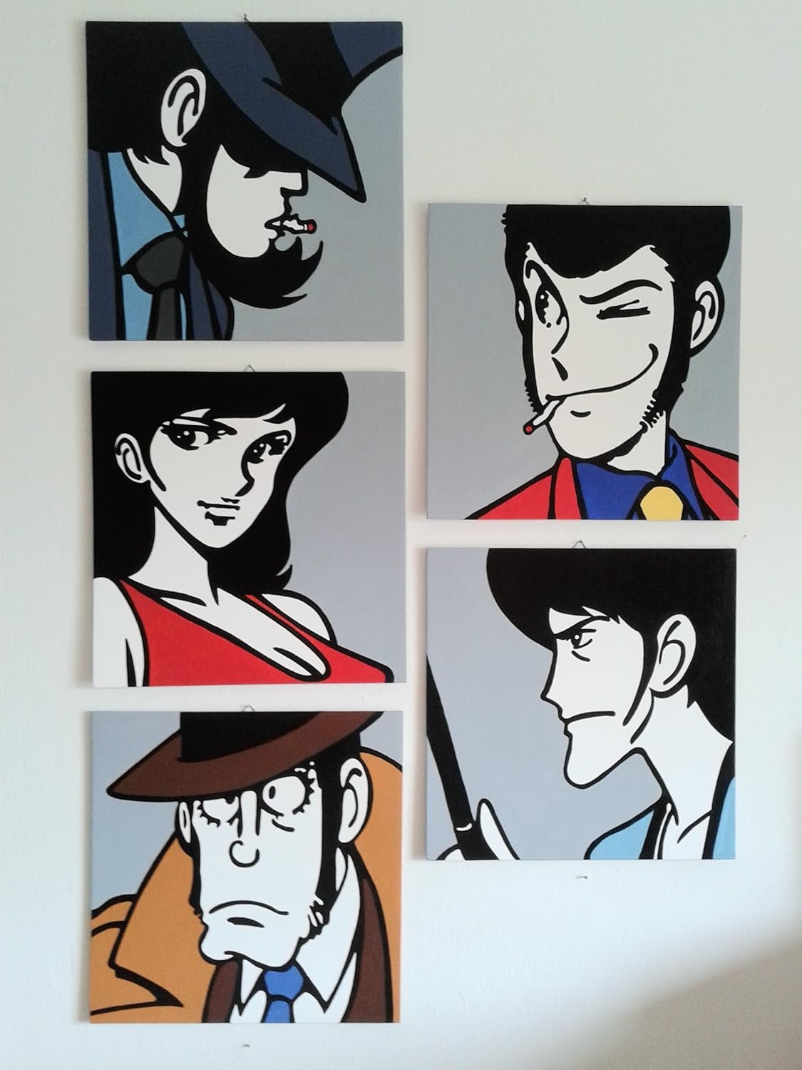 Fratta Quadri Lupin Banda Lupin Iii Set 5 Tele Dipinte A Mano Painting Bild Cadre Marco 30 X 30 Cm Amazon It Casa E Cucina