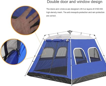 Wff Tenda Da Campeggio All Aperto 3 4 Persone Angolo Quadrato Quattro Porte Con Tende Da Padiglione Tenda Parasole Automatica Da Campeggio Ad Apertura Rapida Blu Centimetro Amazon It Sport E Tempo Libero