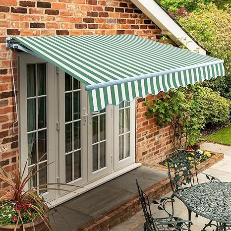 Outsunny Tenda Da Sole Avvolgibile Manuale Esterno Tessuto Di Poliestere 2 5 2m Verde E Bianco Amazon It Giardino E Giardinaggio