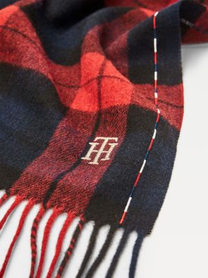 Sciarpa In Pura Lana A Quadri Scozzesi Blu Tommy Hilfiger