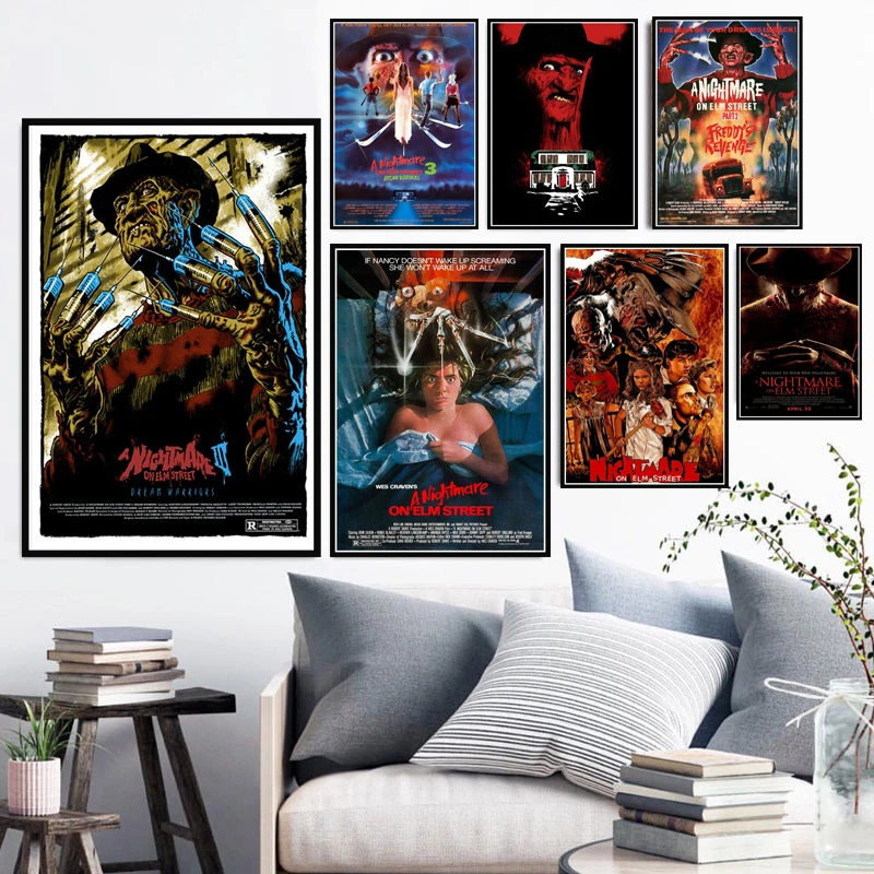Halloween Gift A Nightmare Elm Street Freddy Horror Movie Poster Prints Canvas Painting Art Wall Pictures Decor Quadro Cuadros Painting Calligraphy Aliexpress