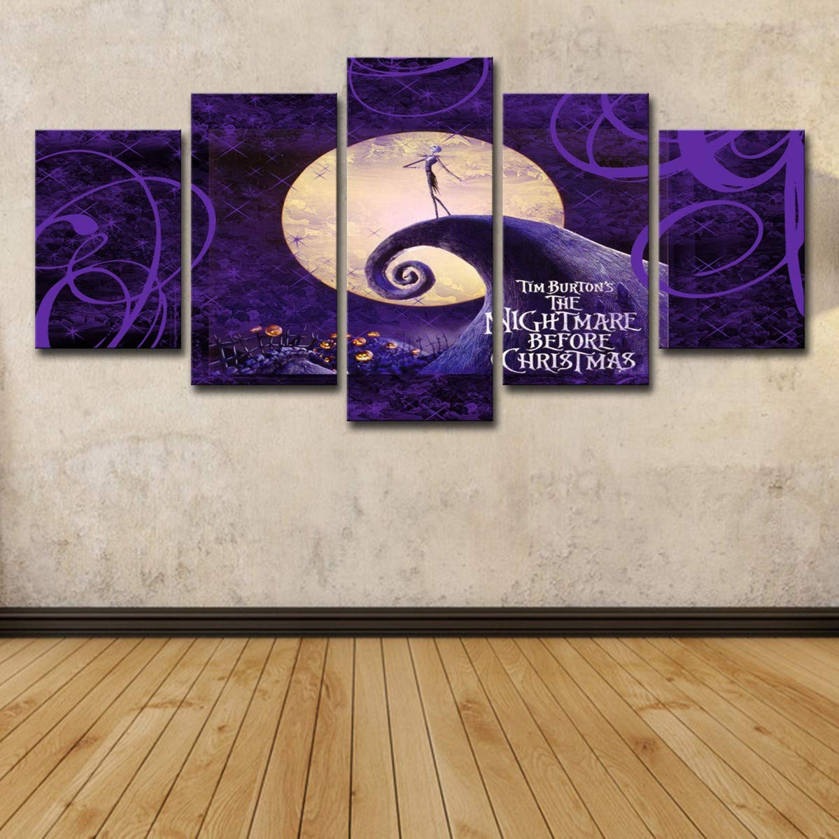 Tytlprints Quadro Su Tela 5 Pezzi Hd Immagini Stampate Nightmare Before Christmas Halloween Cornice Per Poster Decorazioni Per La Casa Soggiorno Parete Amazon It Casa E Cucina